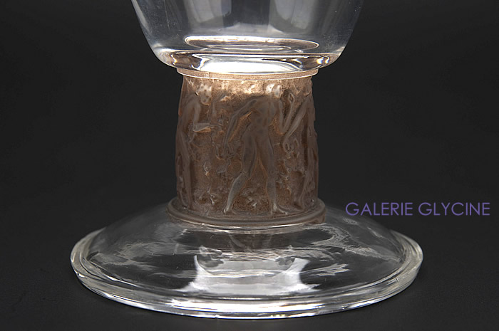 透明ガラス、茶パチネ彩色、カップ部は型吹き成型、脚部はプレス成型